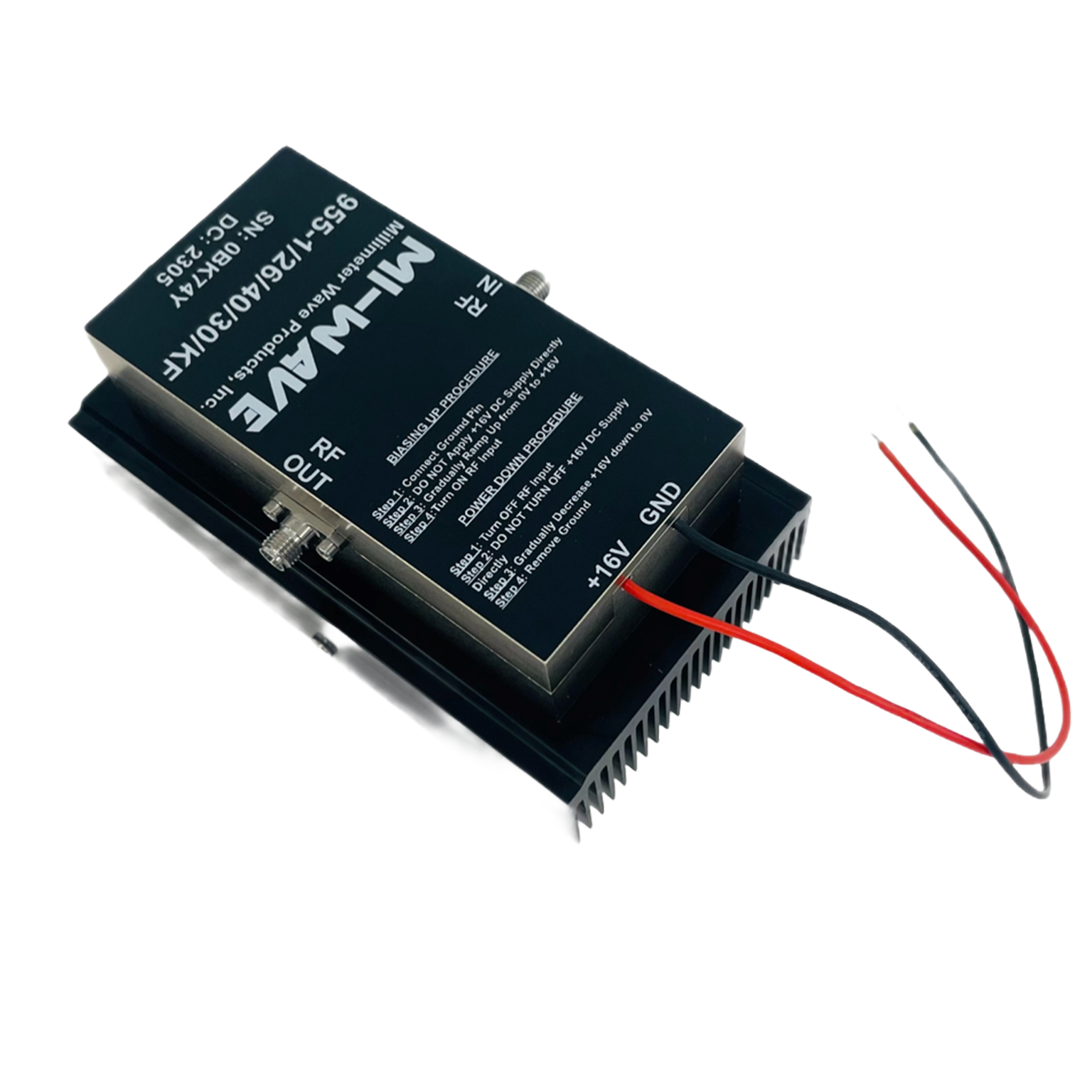 Because power amplifier requirements vary significantly depending on frequency band, bandwidth, output power, and system architecture, Mi-Wave works closely with customers to define the appropriate amplifier topology, electrical performance, and mechanical configuration. Please consult Mi-Wave for detailed technical specifications, outline drawings, and custom 955 Series microwave and millimeter-wave power amplifier solutions tailored to your application.